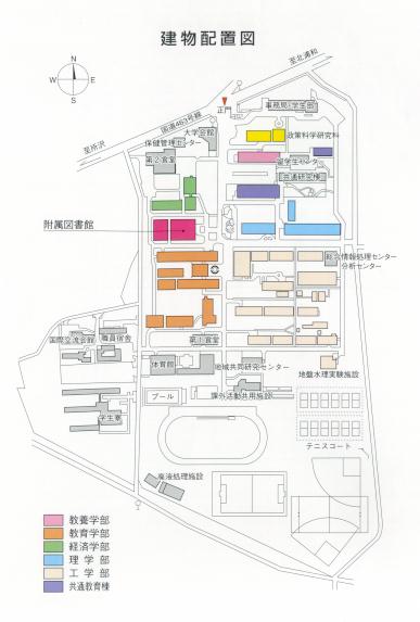理工学研究科は工学部(肌色の部分)の左上端の建物です。